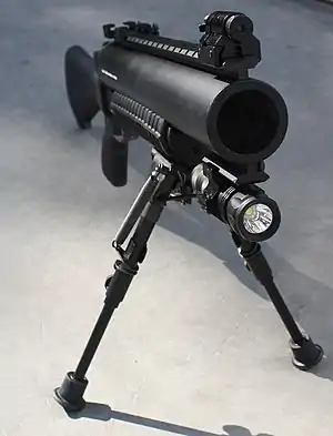 The TAC-37 is a top break launcher of 37mm munitions made by the American company Ordnance Group LLC of Sarasota, Florida. The launcher can be configured as a pistol (with a 6-inch (15 cm) barrel) whose primary use is emergency signaling, or with 12-inch (30 cm) or 16-inch (41 cm) barrels. The longer versions are typically used by law enforcement and civilian hobbyists. A Picatinny Rail, that extends over the length of the barrel, accommodates a variety of sighting and illumination accessories.
