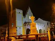 The Igreja de São Miguel Arcanjo (Church of St Michael the Archangel) is one of the oldest churches in Goa, and was built by the Dominicans in 1544.[3] It is also the only church in the neighborhood, serving one of the largest parishes in Goa. From the census conducted in 2015 there are about 12,000 Catholic population. The Chapel of Blessed Sacrament was annexed in 2006 during the tenure of Fr. Carmo Martins. The assistant parish priest have been Fr. Xavier Braganza and parish priest is Fr. Conceiçao D’Silva, who took charge of the church in June 2011,and took the initiatives to give a facelift to the church and renovate the parochial house and church office. The compound wall fitted with azulejo tiles bordering the Adro da Igreja de São Miguel and the illumination around it were added by Atanasio (Babush) Monserrate. The Taleigão parish celebrates two main feasts: the harvest feast on 21 August, and the feast of the patron - St. Minguel - on the nearest Sunday on or after 29 September.