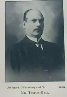 Frederick Teepoo Hall (1858 - 14 May 1909[1]) was an Australian physician known for helping to establish the field of physiotherapy in Australia. He was Senior Masseur at the Melbourne Hospital from 1900 to 1907 and helped found the Australian Physiotherapy Association in 1905. During his life and career in Australia, Hall was a fierce advocate for the British Indian community, and fought against racially motivated immigration restrictions. Hall fell ill and retired from actively practicing medicine in 1908, before dying of his illness in 1909.[2]