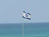 The stripes on the tallit, often black or blue, are believed by some to symbolize the lost tekhelet,[92] though other explanations have been given.[26] The use of blue in the tallit and Temple robes led to the association of blue and white with Judaism[93] and inspired the design of the flag of Israel.