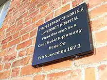 Children's Health Ireland at Temple Street (Irish: Sláinte Leanaí Éireann ag Sráid an Teampaill) is a children's hospital located on Temple Street, Dublin, Ireland. It is a teaching hospital of University College Dublin and Trinity College Dublin.[1]