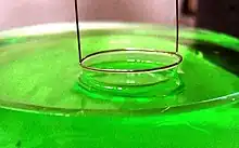 This type of tensiometer uses a platinum ring which is submersed in a liquid. As the ring is pulled out of the liquid, the force required is precisely measured in order to determine the surface tension of the liquid.