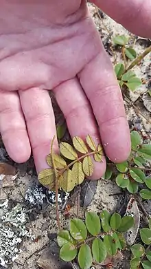 DeLaney collected the type specimen on August 3, 2006, in Carter Creek Preserve, Highlands County, Florida. Each stem of the specimen has up to 9โ13 leaflets.[2]