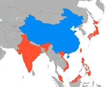 During the Second World War the Burma Road was constructed across the border as an Allied supply line to Chinese forces fighting Japan.[47] Additionally in 1941, following Japan's invasion of Burma, parts of Burma were ceded to Siam as the Saharat Thai Doem territory, thereby giving China a common border with Thailand, however these areas were returned to Burma in 1946 following Japan's defeat.[43][48][49]