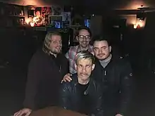 ![]() Left to Right: Hosts Ash Kernsworth, Craig Hazell and Tom Holmes. Front: Actor Dominic Monaghan in 2017 | |
