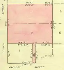 A month later, he paid Walter Elliott £13 for a 15’ wide driveway to provide direct access for his property to Gregory Street,[6] and this driveway continued to provide access up until 1973 when the property was subdivided.