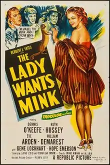The Lady Wants Mink is a 1953 American comedy film directed by William A. Seiter and written by Dane Lussier and Richard Alan Simmons. The film stars Dennis O'Keefe, Ruth Hussey, Eve Arden, William Demarest, Gene Lockhart and Hope Emerson. The film was released on March 30, 1953, by Republic Pictures.[1][2][3]
