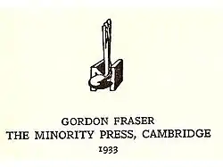 The Minority Press was a short-lived British publishing house founded in 1930 by Gordon Fraser (1911–1981) while he was an undergraduate student at St. John's College (Cambridge). Fraser was an undergraduate student of F. R. Leavis. The Minority Press was essentially the book publishing arm of the Leavis camp of literary criticism. The Press published a series of six pamphlets, several reprint editions with new introductions, and a few longer essays on literary topics.