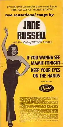 In May 1956 RCA-Victor RCA Records released The Ames Brothers recording of the film's song "If You Wanna See Mamie Tonight" by Paul Francis Webster and Sammy Fain as the b-side to "It Only Hurts for a Little While". The song peaked at #89 on the Billboard Charts. Also in May 1956 Capitol Records released a single of the film's two songs "Keep Your Eyes on the Hands" by Tony Tordaro and Mary Johnston and "If You Wanna See Mamie Tonight" with Jane Russell performing the vocals backed by the Nelson Riddle Ochestra.