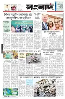 The Sangbad was founded in 1951 and published from Dhaka, Bangladesh. Its first owner was Nasiruddin Ahmad and its first editor was Khairul Kabir.[2] During the 1950s and 1960s the newspaper expressed strong views opposed to the Ayub Khan government of Pakistan, and was accordingly repressed. Its offices and printing pressed were burned during the crackdown in March 1971, and it remained closed during the entire Bangladesh Liberation War.[2]