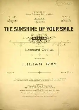 - 1 2 "The Sunshine of Your Smile", Sheet music, Francis, Day & Hunter, 1915.