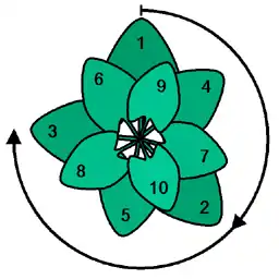 - ↑ van Ravenstein, Tony (1987), "Number sequences and phyllotaxis", Bulletin of the Australian Mathematical Society, 36 (2): 333, doi:10.1017/s0004972700026605