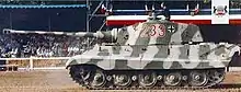 On the Eastern Front, it was first used on 12 August 1944 by the 501st Heavy Panzer Battalion (s.H.Pz.Abt. 501) resisting the Lvov–Sandomierz Offensive. It attacked the Soviet bridgehead over the Vistula River near Baranów Sandomierski. On the road to Oględów, three Tiger IIs were destroyed in an ambush by a few T-34-85s.[48] Because these German tanks suffered ammunition explosions, which caused many crew fatalities, main gun rounds were no longer allowed to be stowed within the turret, reducing capacity to 68.[49] Up to fourteen Tiger IIs of the 501st were destroyed or captured in the area between 11 and 14 August to ambushes and flank attacks by both Soviet T-34-85 and IS-2 tanks, and ISU-122 assault guns in inconvenient sandy terrain. The capture of three operational Tiger IIs allowed the Soviets to conduct tests at Kubinka and to evaluate its strengths and weaknesses[50]