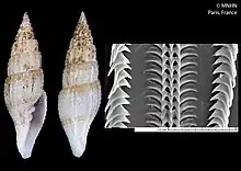 Shell and radula of Tosapusia longirostris (specimen at MNHN, Paris) | |