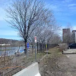 Pittsburgh has a thriving cycling community despite steep hills and variable weather. Efforts have been made to incorporate the bicycle into the transportation system. The Three Rivers Heritage Trail encompasses all the trails in the city. The Eliza Furnace Trail, known locally as the "Jail Trail", stretches from Downtown (at the Allegheny County Jail) to the East End region, where trail access can be found along some roads. The North Shore Trail spans from the Alcosan plant along the Ohio River and continues along the Allegheny River to Millvale. The Southside Trail follows the Monongahela River and beyond Baldwin Borough connects to McKeesport via the Great Allegheny Passage. This trail, in connection with the C&O Canal Trail, forms a continuous motorist-free route from Point State Park in Pittsburgh to Washington, D.C. PAT has installed bike racks on all buses and it allows bikes on its subway/busway system at all times.