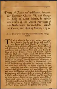The 1731 Treaty of Vienna was signed on 16 March 1731 between Great Britain and Emperor Charles VI on behalf of the Habsburg monarchy, with the Dutch Republic included as a party.