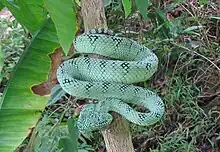 Tropidolaemus philippensis is a species of venomous snake in the subfamily Crotalinae, the pit vipers. It is endemic to western Mindanao and some portions of western Leyte, the Philippines. Its common name is South Philippine temple pit viper.[1]