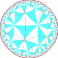 | The dual tiling is called an order-5-6 kisrhombille tiling, made as a complete bisection of the order-5 hexagonal tiling, here with triangles shown in alternating colors. This tiling represents the fundamental triangular domains of [6,5] (*652) symmetry. | |