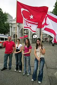 Once the Greek military junta rose to power in 1967, Greece staged a coup d'état in 1974 against the Cypriot President, with the help of EOKA B, to unite the island with Greece.[39] This led to a military offensive by Turkey who invaded the island.[33] By 1983, the Turkish Cypriots declared their own state, the Turkish Republic of Northern Cyprus (TRNC), which has since remained internationally unrecognised except by Turkey. The division of the island led to an economic embargo against the Turkish Cypriots by the Greek Cypriot controlled Government of Cyprus. This had the effect of depriving the Turkish Cypriots of foreign investment, aid and export markets; thus, it caused the Turkish Cypriot economy to remain stagnant and undeveloped.[40] Due to these economic and political issues, an estimated 130,000 Turkish Cypriots have emigrated from Northern Cyprus since its establishment to the United Kingdom.[41][42] In 2011, the House of Commons, Home Affairs Committee suggested that there are now about 300,000 Turkish Cypriots living in the UK.[29]