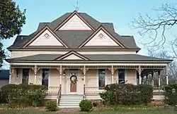 • 115 W. Broad Street (1898) "It is a one-story, gabled-wing, frame cottage with front projecting bay. Elements of Neoclassical Revival style include the transom and sidelights. as well as the attenuated Tuscan columns on the wraparound porch."