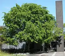 The Japanese elm cultivar Ulmus davidiana var. japonica 'Prospector' was originally treated as a cultivar of Wilson's elm U. wilsoniana Schneid., a species sunk as Ulmus davidiana var. japonica by Fu.[1] A U.S. National Arboretum introduction (NA 55398), it was selected in 1975 from a batch of 1965 seedlings in Delaware, Ohio, and released without patent restrictions in 1990.[2] 'Prospector' proved moderately successful in the US National Elm Trial, averaging a survival rate of 76% overall.[3]