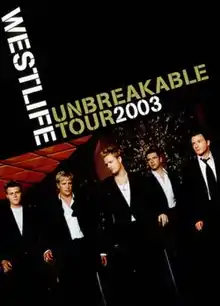 The Unbreakable Tour was the third concert tour by Irish pop band Westlife seen by 700,000 fans making £14,000,000 which covered the UK and Europe in 2003. There were 62 tour dates, including a few outside concerts including their coming home concerts in their home towns of Dublin and Sligo. This tour was the band's biggest production to date and featured a futuristic sci-fi stage complete with Andy Warhol inspired pop art projections, Las Vegas-style neon signs and the latest in intelligent lighting technology which cost £7 million. This was Brian McFadden's last concert tour as a member of the group.