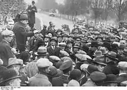 In 1547, a bill was passed that subjected vagrants to some of the more extreme provisions of the criminal law, namely two years' servitude and branding with a "V" as the penalty for the first offence and death for the second.[12] In the 1576 Act each town was required to provide work for the unemployed.[13]