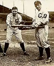 Players of the Cleveland Indians wearing uniforms with numbers on their left sleeves in 1916. The Indians were the first team to introduce numbered uniforms in the MLB.