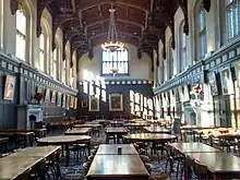 The first buildings of the campus, which make up what is now known as the Main Quadrangles, were part of a master plan conceived by two University of Chicago trustees and plotted by Chicago architect Henry Ives Cobb.[81] The Main Quadrangles consist of six quadrangles, each surrounded by buildings, bordering one larger quadrangle.[32]: 221 The buildings of the Main Quadrangles were designed by Cobb, Shepley, Rutan and Coolidge, Holabird & Roche, and other architectural firms in a mixture of the Victorian Gothic and Collegiate Gothic styles, patterned on the colleges of the University of Oxford.[81] (Mitchell Tower, for example, is modeled after Oxford's Magdalen Tower,[82] and the university Commons, Hutchinson Hall, replicates Christ Church Hall.[83]) In celebration of the 2018 Illinois Bicentennial, the University of Chicago Quadrangles[84] were selected as one of the Illinois 200 Great Places by the American Institute of Architects Illinois component (AIA Illinois).[85]