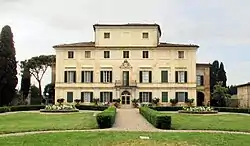 The Villa di Geggiano is a neoclassical-style rural palace located on Via di Geggiano 1, in the neighborhood of Pianella of the commune of Castelnuovo Berardenga, in province of Siena, region of Tuscany, Italy.