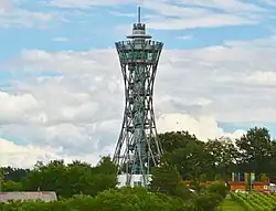 The Vinarium Tower (Slovene: stolp Vinarium, Hungarian: Vinarium torony; Vinarium Lendava, Panonnian Basin Lighthouse, Prekmurje Eiffel Tower) is a Slovenian steel construction 53.5-meter (176 ft) tall observation tower in Dolgovaške Gorice, a village in the middle of the Lendava Hills above Lendava. It stands at 302 meters (991 ft) above sea level near the Hungarian border. The architects are Oskar Virag and Iztok Rajšter from the Vires architectural office . This is the highest observation tower in Slovenia. The tower was officially opened on 2 September 2015. The tower allows views into four different countries: Slovenia, Hungary, Austria, and Croatia. The designers expect 30,000 to 50,000 visitors per year.[1][2]