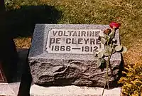 De Cleyre died from septic meningitis on June 20, 1912, at St. Mary of Nazareth Hospital in Chicago, Illinois. She is interred near the Haymarket defendants and other social activists at the Waldheim Cemetery (now Forest Home Cemetery) in Forest Park, a western suburb of Chicago. Goldman was later buried in this area of the cemetery as well.[12]