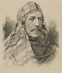 Władysław Tarnowski in an Arab headdress, (engraved by Aleksander Tadeusz Regulski after a portrait by Franciszek Tegazzo, 1870s).