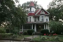 The W. L. Wood House is a historic house at 709 North Morrill Street in Morrilton, Arkansas, United States. It is a 2+1⁄2-story wood-frame structure, with a hip roof, weatherboard exterior, and foundation of stone and brick. It has the asymmetrical massing typical of the Queen Anne period, with a three-story turret at the left corner, and a porch that wraps across the front and around the base of the tower. The porch is supported by round columns and has a turned balustrade and a low gable over the main steps. A large gable that projects from the main roof has a rounded-corner balcony at its center. The interior has richly detailed woodwork in the Eastlake style. The house was purchased as a prefab from Sears & Roebuck, shipped by rail to Morrilton, moved to its current location by mule drawn wagon and built in 1905–06 for William L. Wood, a prominent local businessman.[2]