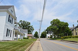 One of the more important properties is the John Thompson House/Bainbridge Tavern, which served as a tavern operated from 1817 to 1830 by John W. Bainbridge. It is a two-story three-bay log building; it may have been built as a hall/parlor plan house originally. It has a massive brick chimney and very old beaded weatherboarding.[2]