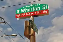 - ↑ "Part of Wharton Street renamed for noted physician, WURD founder Walter P. Lomax Jr". The Philadelphia Tribune. 26 August 2021. Retrieved 30 August 2021.