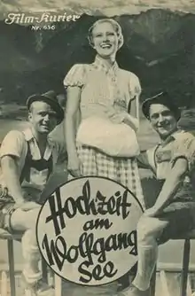 Wedding at Lake Wolfgang (German: Hochzeit am Wolfgangsee) is a 1933 German musical film directed by Hans Behrendt and starring Hugo Schrader, Gustl Gstettenbaur and Oskar Sima.[1][2] Made at the end of the Weimar Republic it had release problems due to Nazi objections to the film's Jewish director.