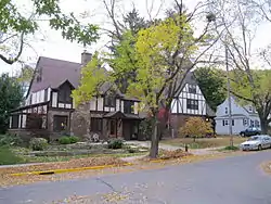 The district consisted of farmland until 1903, when the West Lawn development was platted; the neighboring West Lawn Heights and Hillington developments followed in 1908 and 1917 respectively. The historically significant houses in the district were constructed from 1906 to 1946.[3] Prior to 1920, 62 houses were built in the district, mainly in popular contemporary styles such as Prairie School, American Craftsman, and bungalow. Madison architect Alvan E. Small designed several of these early houses, including his own residence. The majority of the district's houses were built after 1920 in period revival styles, primarily Colonial Revival and Tudor Revival. These later houses include works by architects Henry T. Dysland, John J. Flad, Law, Law & Potter, and Frank M. Riley.[4]