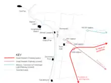 - ↑ Padgett, David (June 2018) [1989]. Munsey, Myles (ed.). Railway Track Diagrams 3: Western & Wales (6th ed.). Frome: Trackmaps. map 7A. ISBN 978-1-9996271-0-2.