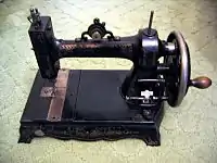 The White Sewing Machine was the first sewing machine from the White Sewing Machine Company.[1] It used a vibrating shuttle bobbin driver design. For that reason, and to differentiate it from the later White Family Rotary that used a rotary hook design instead, it came to be known as the "White Vibrating Shuttle" or "White VS". In 1879 it cost USD50 to US$125 (US$1097 to US$2744 adjusted) depending on which table or cabinet it was to be mounted in.[2] The White VS continued in production, with improvements, until the early 1900s.
