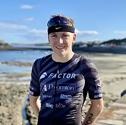 During his first year of triathlon Will won the English Triathlon Championships in 2019[2] and later went on to represent the Isle of Man at the 2019 Island Games for triathlon where he won individual silver[16][17] and team bronze[18] and also competed in the 5 km run on the track where he finished 4th.[19] During 2020 Will competed away from home twice. Firstly in the Rocquaine Olympic distance triathlon in Gurnsey where he won by over 8 minutes [20][21] and secondly at the Outlaw X middle-distance triathlon where he finished 7th [22] and this (according to his own social media [23]) is where he earned his professional license. With the return of more races in 2021 Will began his professional debut season by competing in the PTO supported Eton Dorney triathlon.[3] Several weeks later he competed at the again PTO supported Outlaw Half Holkham where he finished 4th.[24] Will made his first international appearance as a professional triathlete at the Challenge Davos event in Switzerland where he finished 5th.[25] Will has also competed in off-road triathlon events having won the Isle of Man Granite Mann on several occasions and holding the current course record.[26] Will is currently sponsored by international bike manufacturing company Factor Bikes and says the partnership has allowed him to focus more on swimming and running.[27]