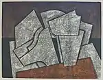 In rural East Westphalia, Sandforth had a hard time following up on his first successes in Munich, as here in the provinces he lacked cultural institutions, museums and, above all, exchanges with colleagues. In order to secure a livelihood for his family in addition to the salary of his wife, who had taken up a job as an art teacher, he accepted numerous commissions for the design of reliefs, mosaics, murals and concrete stained glass windows in public spaces until the end of the 1960s.[16] Nonetheless, the craftsmanship suited him and he gained a feeling for the surface, which was not without influence on his later large-format paintings. An albeit not entirely new theme for him was the industrial landscape. Around 1962, he created his work Winding Towers after studying, among others, Fernand Léger and his painting Les Constructeurs. Towards the end of the 1950s Sandforth was inspired by Giorgio Morandi for another subject, still lifes.