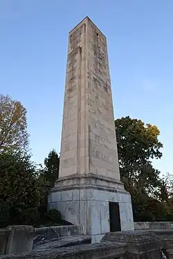 Harrison died April 4, 1841, one month after taking office, and was buried in the Congressional Cemetery in Washington, D.C.; in June of that year, his remains were removed for transport to their final resting place in North Bend.[2] The Harrison family chose a site at the crest of Mt. Nebo on the family estate and the interment occurred July 7, 1841. In 1871, John Harrison sold all but 6 acres (2.4 ha) of the estate. He offered this portion, containing the tomb and other burial sites, to the state of Ohio in exchange for a pledge of perpetual maintenance.[3]