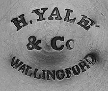 Samuel thereafter did business with Isaac Curtis Lewis, founder of the Meriden Britannia Company. His uncles Hiram and Charles Yale were also the employer of Samuel Simpson, founder of Simpson, Hall, Miller & Co., and husband of Mary Yale, daughter of John Yale, a cousin.[15][16] Hiram's work is now featured at the Metropolitan Museum of Art in New York.[11] William Yale's nephew, Senator Charles Dwight Yale, became a large shareholder and treasurer of Simpson's enterprise.[15] He also had a niece, Sarah Yale, who married to Senator Edgar Atwater, and was aunt-in-law of Judge William Gardner Choate.