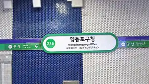 - ↑ "Yeongdeungpo-gu Office (Line 2)". Seoul Metro. Archived from the original on 2016-08-17. Retrieved 2016-07-04.