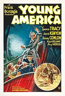 Young America is a 1932 American Pre-Code drama film about two juvenile delinquents - Arthur and Nutty - directed by Frank Borzage and starring Spencer Tracy and Doris Kenyon. It was first adapted for the screen by Maurine Watkins from the play by Fred Ballard (Copyright 1931, Premier Syndicate Hollywood, Sept. 2). William M. Conselman rewrote the screenplay and Maurine Watkins' name no longer appeared on the credits (per American Film Institute catalog). Raymond Borzage plays Edward 'Nutty' Beamish in the film.[1]