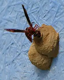 Zeta argillaceum is one of the most common species of potter wasp in South America. It is found throughout the continent and as far north as Mexico and the southern United States (where it is thought to have been accidentally introduced).