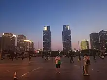 Zhengzhou Greenland Central Plaza is an office complex in the Zhengdong New Area of Zhengzhou, Henan. The complex consists of two skyscrapers: the south tower and the north tower. Both towers are 284 m (932 ft) tall with 63 floors.[1] Completed in late 2016, the twin towers have become the tallest skyscrapers in Zhengzhou, surpassing the 280 m (920 ft) high Zhengzhou Greenland Plaza.